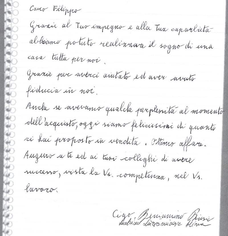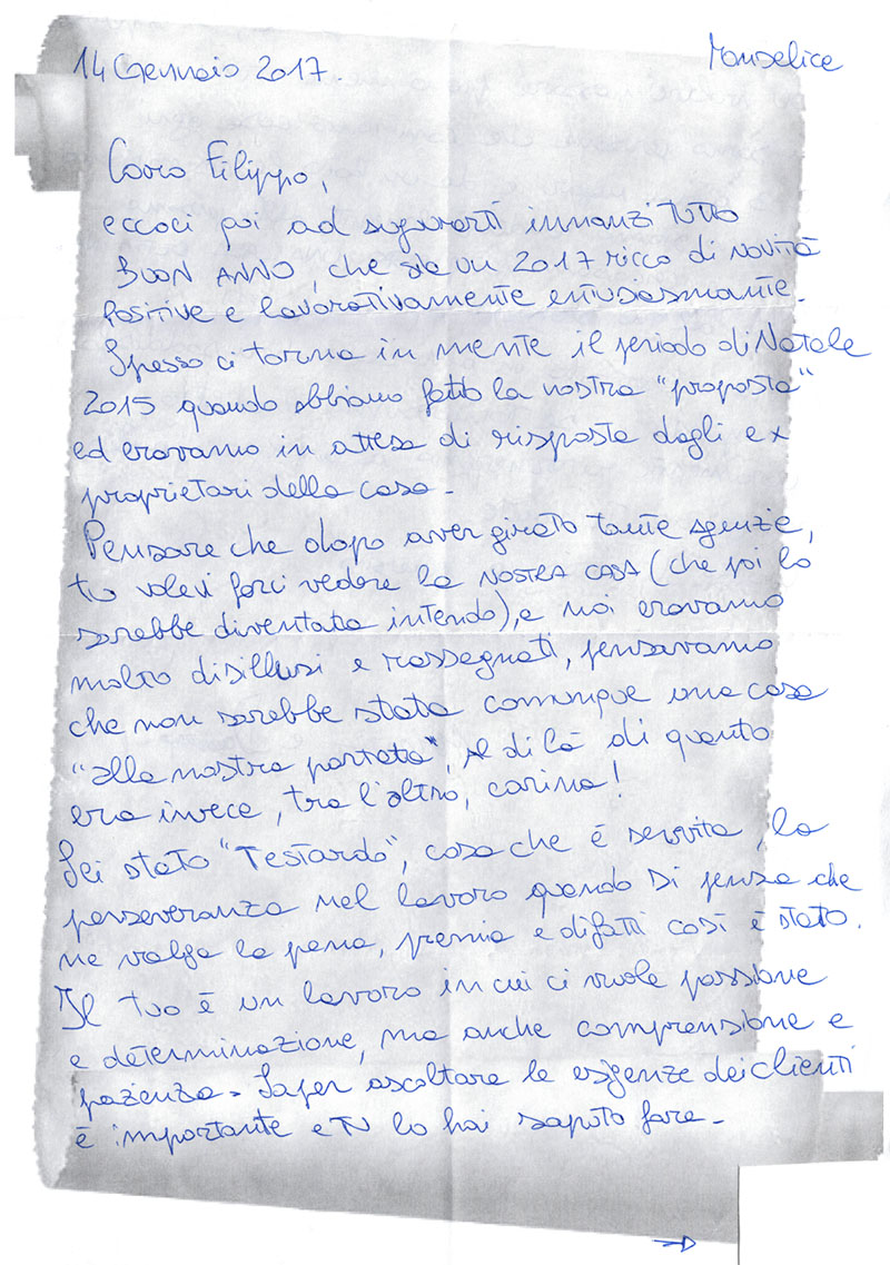 Caro Filippo, grazie al tuo impegno e alla tua caparbietà abbiamo potuto realizzare il sogno di una casa tutta per noi. Grazie per averci aiutato ad aver avuto fiducia in noi.